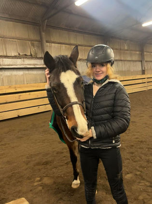 Mclovin is the best first horse! He will teach you to learn to canter all the way through the 2'6"! Has a great canter carriage and an auto lead change.